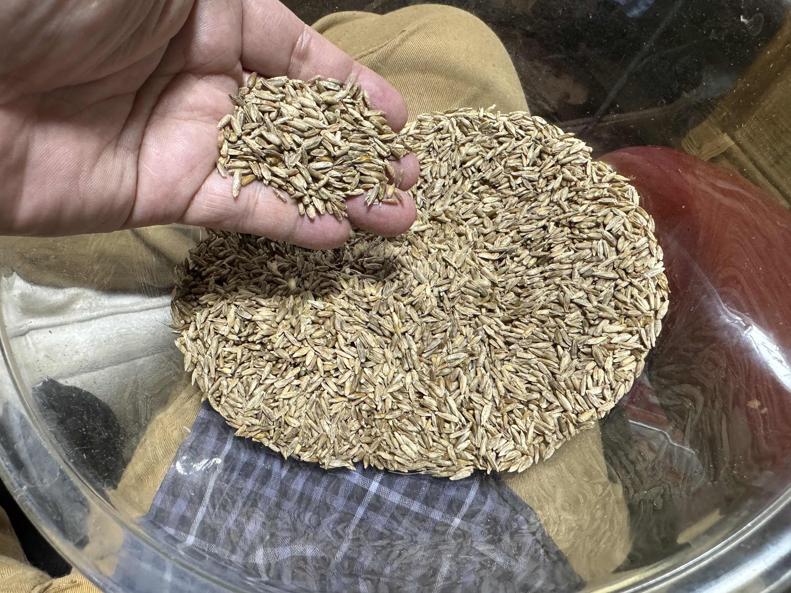 中途半端な実り方をしていた穂からライ麦の種を取り出してみた